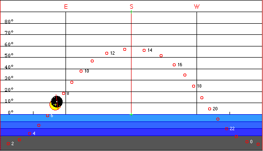 Die Durchmesser von Sonne und Mond sind 20-fach vergrößert dargestellt. Die tatsächliche Bedeckung der Sonne durch den Mond wird daher nicht wiedergegeben.