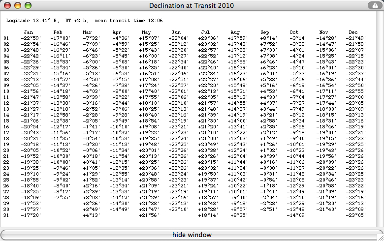 The values of the declination and the equation of