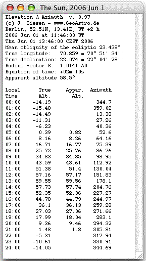 Applet: Elevation and Azimuth of the Sun