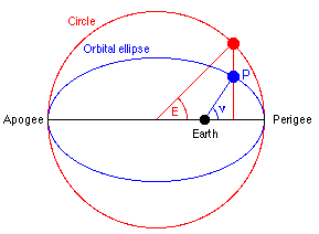 The mean anomaly is the angle of the line joining the focus (Earth) to a hypothetical body that has the same orbital period but travels at a uniform angular speed: