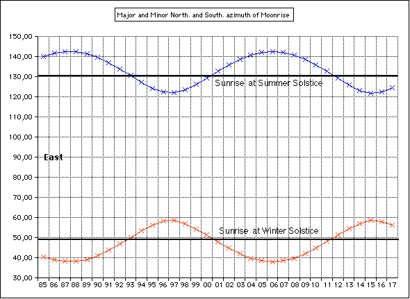 standstill are found at the Stonehenge observatory green: moon azimuth for declination -5.145° and